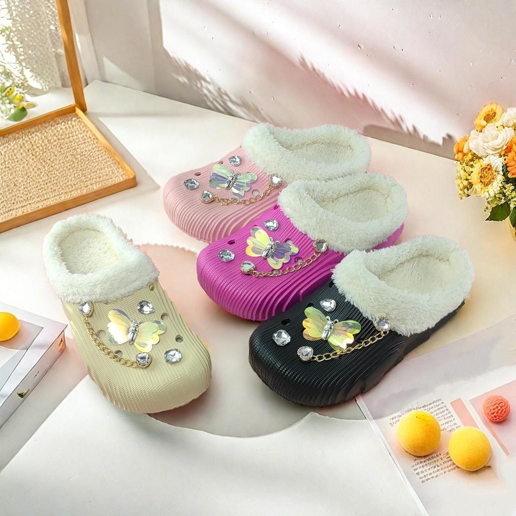 2025 Mode Bequeme Baumwolle Schmetterlingspantoffeln für Zuhause - Unisex Flache Sohle Warm Kettenstil