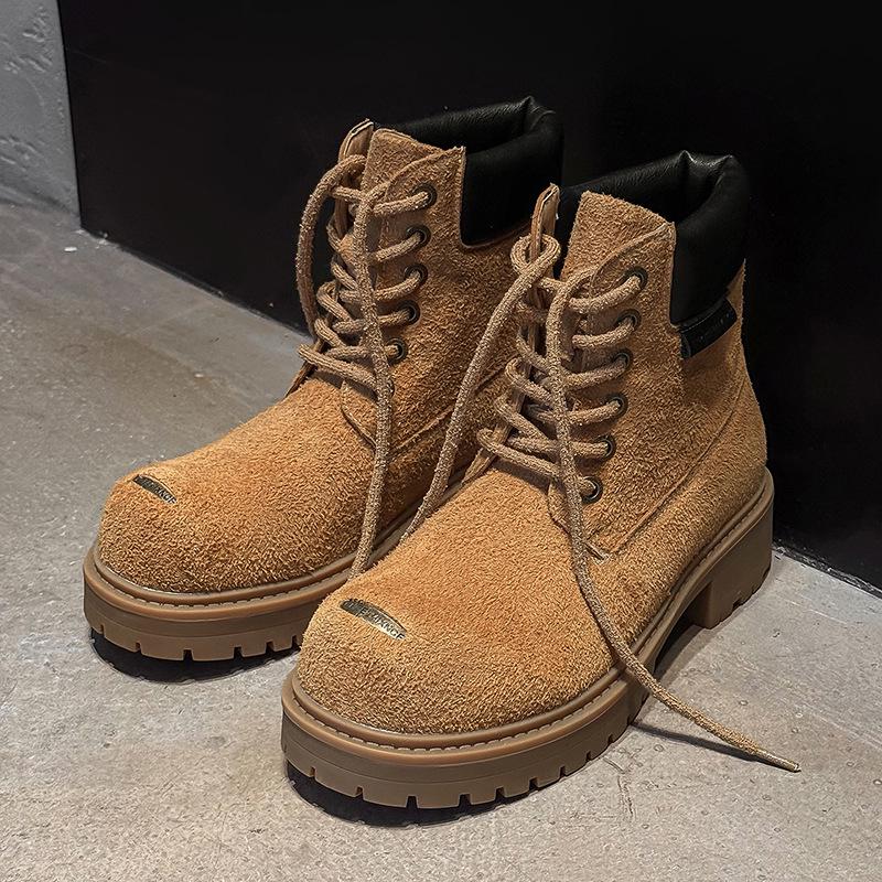 Mickey Yellow Herren Retro Motorrad-Martin-Stiefel mit dicken Sohlen und Höhenverstärkung