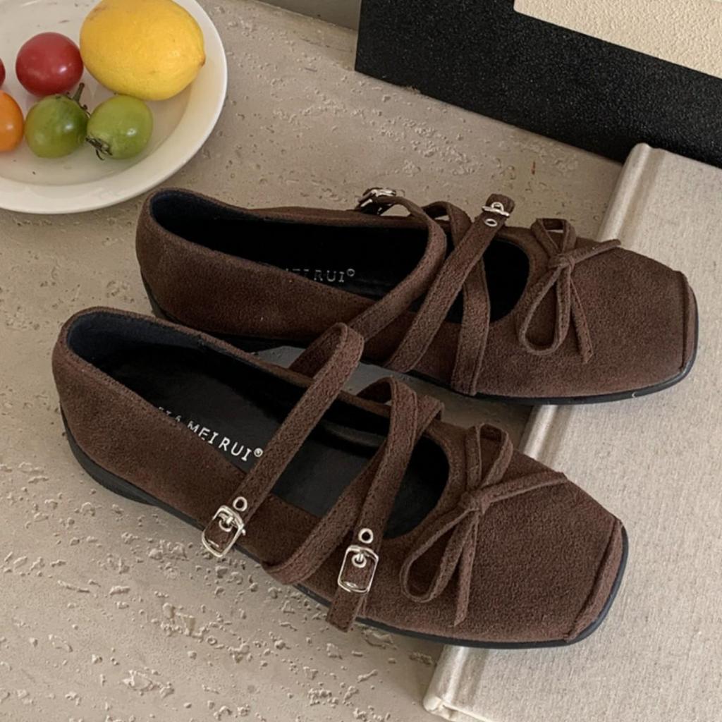 Mary Janes aus Leder im Retro-Stil mit eckiger Spitze - Flacher Absatz, Bequeme Damen-Abendschuhe 2025