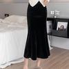 Samtrock Damen Herbst Koreanisch Bodycon Drapierung Hohe Taille Schlank Schwarz Meerjungfrau Rock