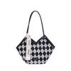 Stylish Design: The tote bag features a trendy checkered pattern available in black, white, diamond black, and diamond brown, making it perfect for streetwear enthusiasts.
