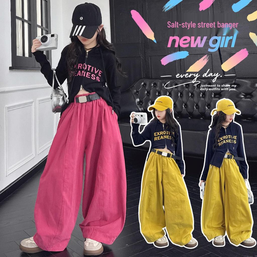 Herbst 2025 Mädchen Dopamin-Set: Stilvolles Langarmhemd & lässige Hose für große Mädchen