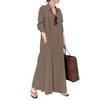 Das Kleid verfügt über Taschen, einen Knopfverschluss und einen schmeichelhaften, lockeren Schnitt, der bedeckt und dennoch schlankmachend und modisch aussieht..