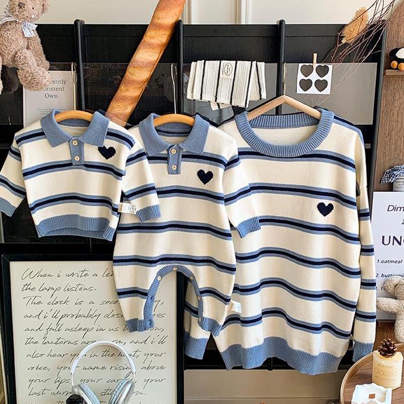 Wir stellen einen charmanten Strick-Jumpsuit vor, der für die ganze Familie entworfen wurde, um gemütliche Momente zusammen zu genießen.. Dieser Jumpsuit aus hochwertigem Strickmaterial bietet Wärme und Komfort, perfekt für die Herbst- und Wintersaison.. Mit einem entzückenden gestreiften Herzmuster ist es in Sets für drei oder vier Personen erhältlich, was es zu einer idealen Wahl für Familienzusammenkünfte oder passende Urlaubsfotos macht.. Mit seiner eng anliegenden Passform und seiner weichen Textur wird dieser Jumpsuit schnell zu einem Favoriten in Ihrer saisonalen Garderobe werden.