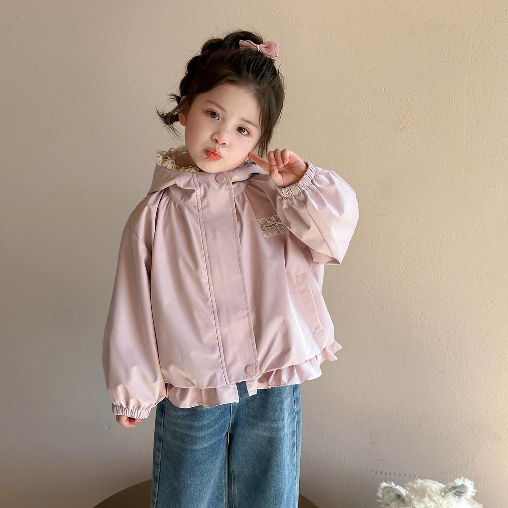 Dieser stilvolle Kapuzen-Windbreaker mit Spitze ist perfekt für Mädchen, die in den Frühlings- und Herbstsaisons modisch bleiben möchten.. Es besteht aus hochwertigem Polyester und bietet daher sowohl Langlebigkeit als auch Komfort.. Der Windbreaker verfügt über lange Ärmel und ein zartes Spitzendesign und vereint Funktionalität mit einer schicken Ästhetik.. Ideal zum Layering, ist es eine unverzichtbare Ergänzung für die Garderobe jeder jungen Fashionista und bietet sowohl Schutz vor den Elementen als auch einen trendigen Look.