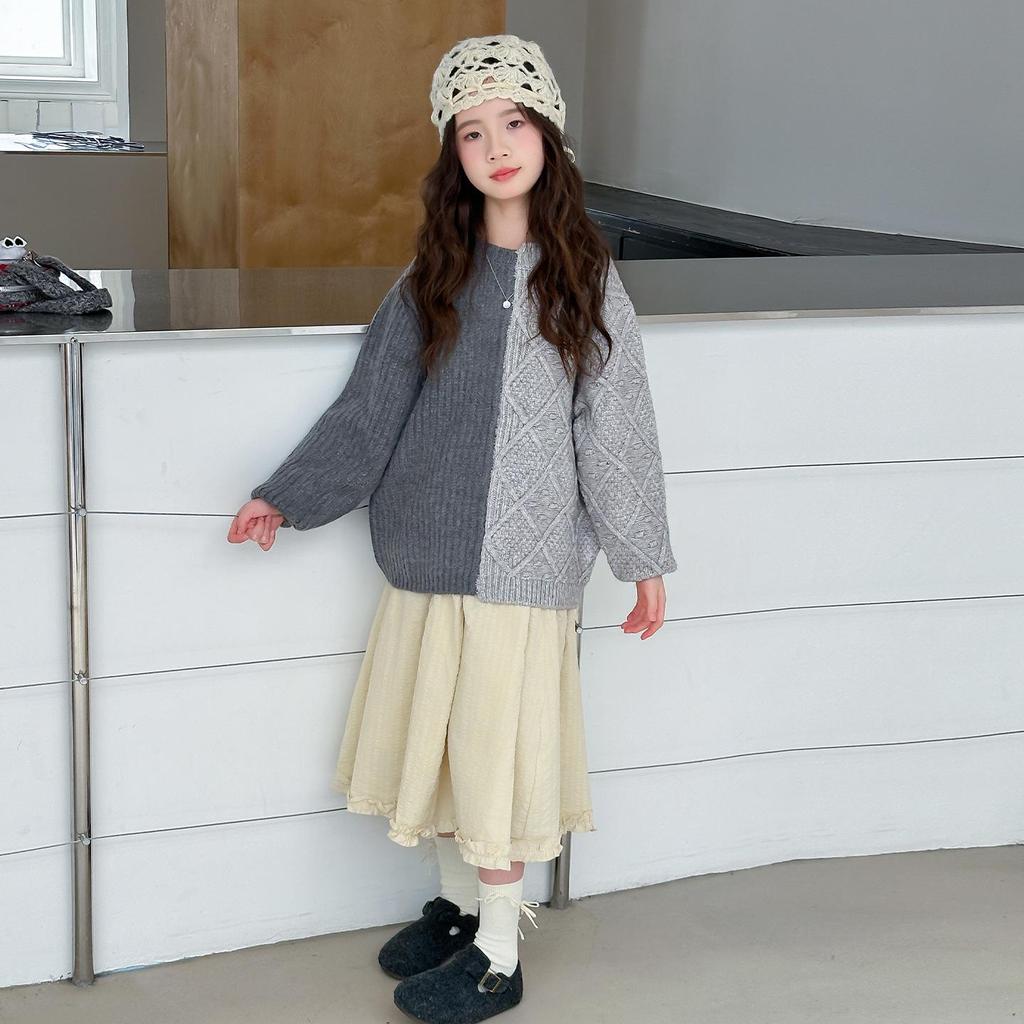 Herbst Winter 2025 Color Block Strickpullover für Mädchen - Trendiges Lazy-Style Oberteil