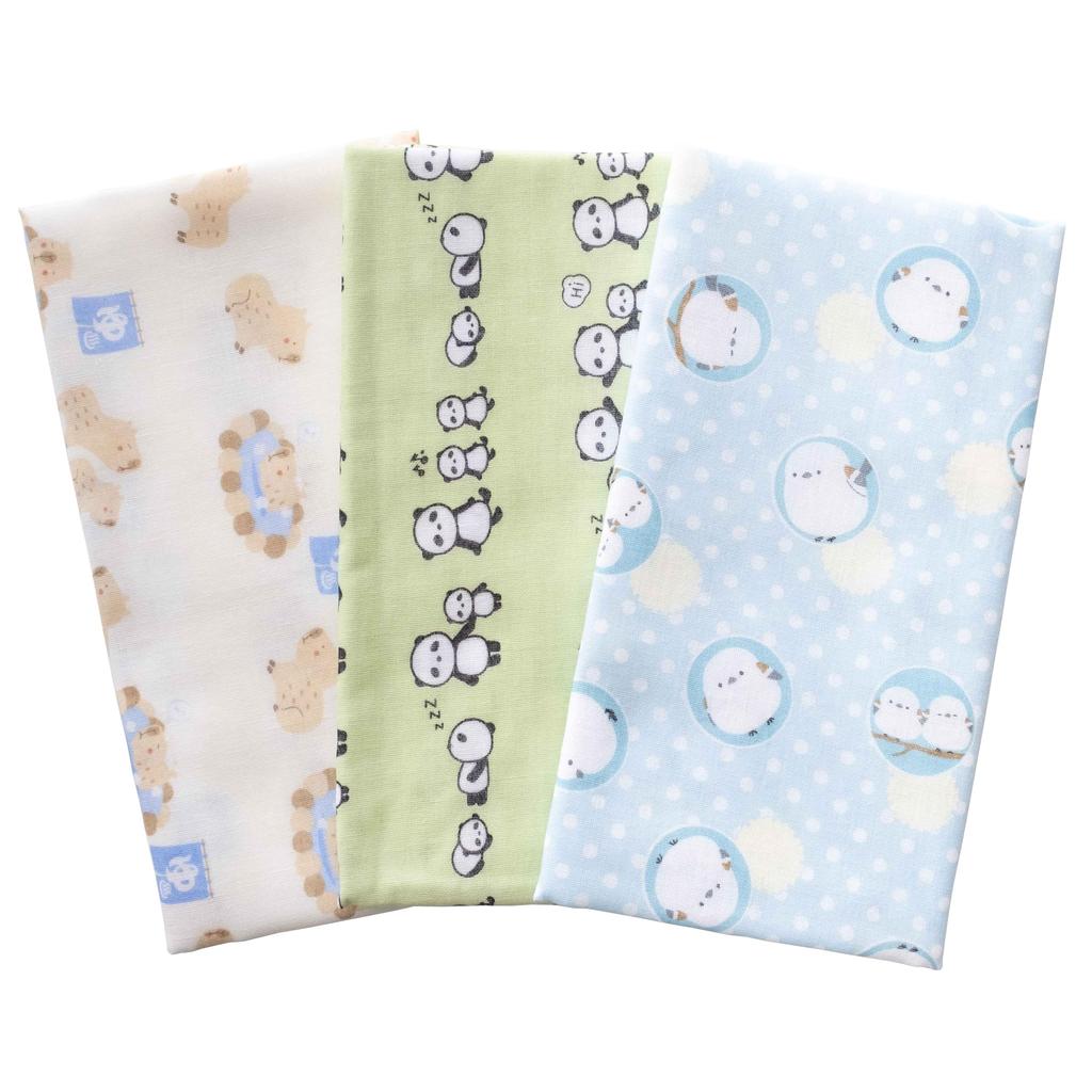 Made in Soft and Cute Gauze Hand Cotton and Japan, Towels, 100% (3 designs Long-tailed Tit, Capybara, Panda)