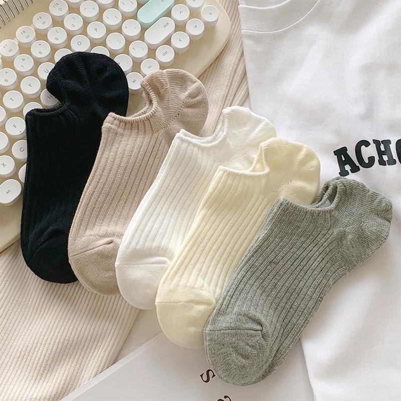 Cremefarbene Unsichtbare Baumwollsocken für Damen: Atmungsaktiv, rutschfeste Ferse, niedrig geschnitten, vertikale Streifen für Frühling & Herbst.
