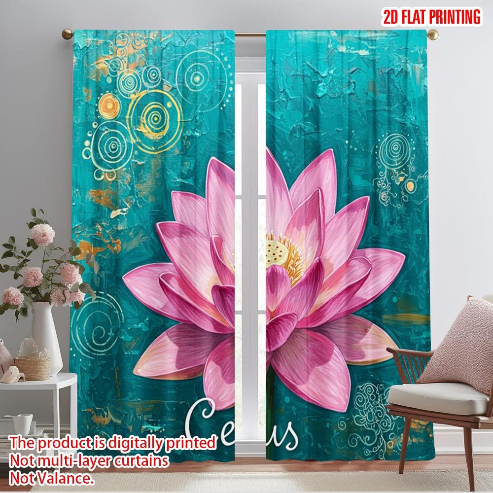 2 Stück 2D Flachdruck Szene Vorhang Lotusblume Aquarell Stoff Ohne Strom Festliche Vorhänge Perfekt für Wandkunst