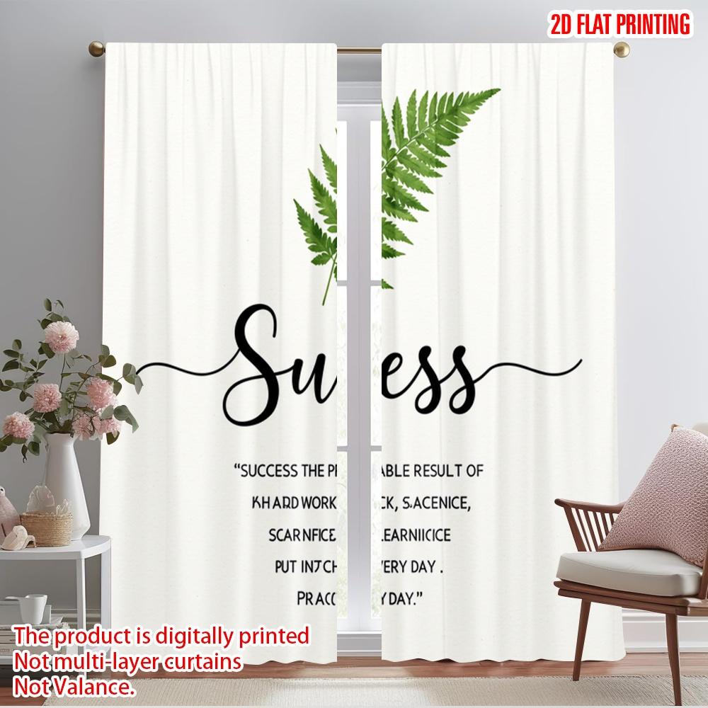 2pcs 2D flat printing Curtain Success Fern Plant Watercolor Polyester Without Electricity Seasonal Party & Holiday Decor for