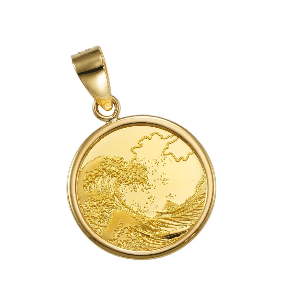 Ein Münzanhänger mit einem Relief eines Meisterwerks des weltberühmten Ukiyo-e-Künstlers Katsushika Hokusai.