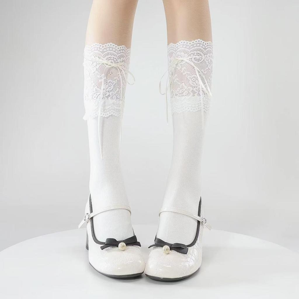 Lolita Spitzenbesatz Kniestrümpfe: Damen Overknee Ballettstil Slouch Socken