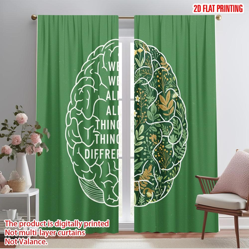 2 Stück 2D Flachdruck Fenstergardinen Gehirn Blume Polyester Ohne Strom Familienfeier Perfekt für Zuhause & Party