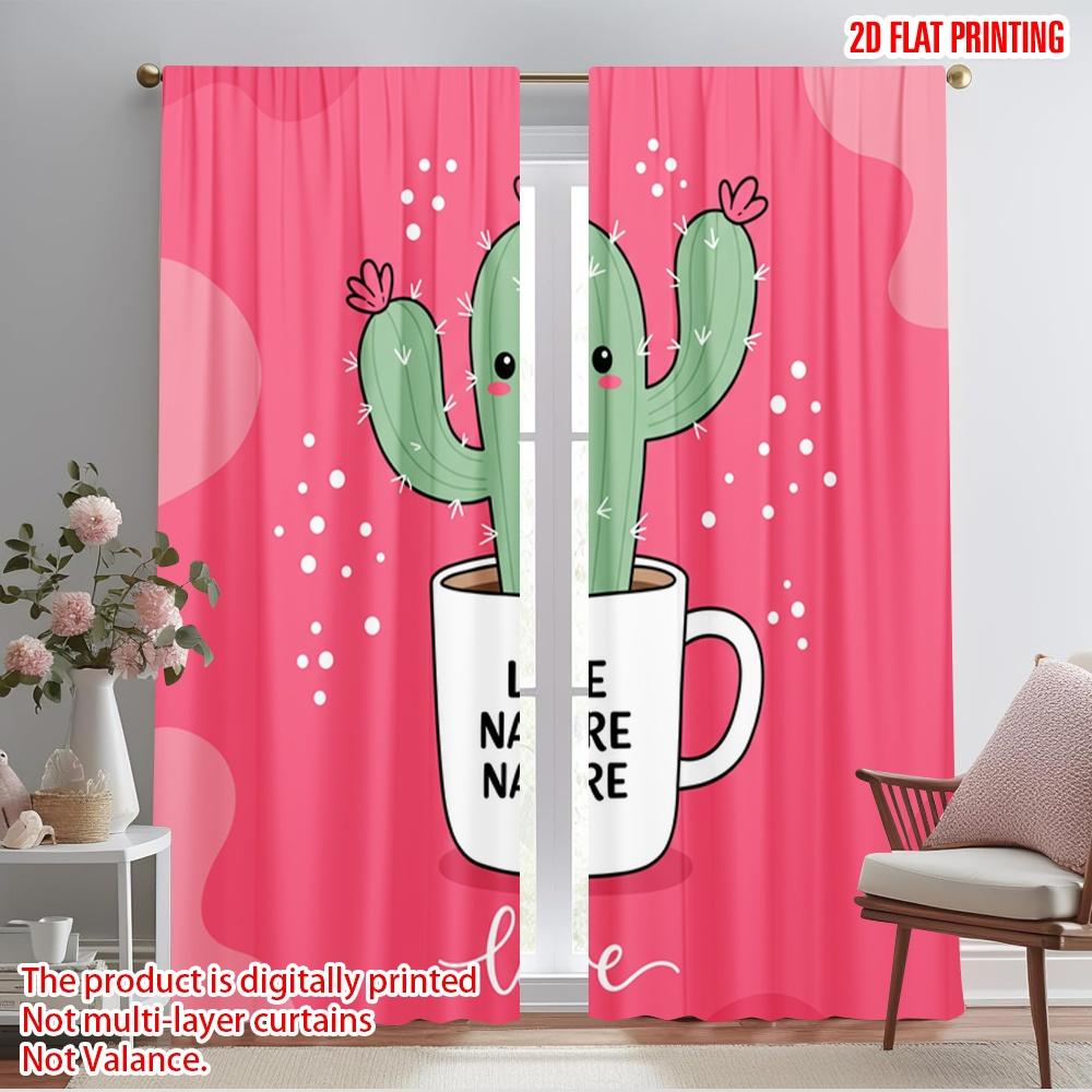 2 Stück 2D Flachdruck Vorhänge Niedlicher Kaktus Liebe Natur Stoff Ohne Strom Festliche Wanddeko Für Innenfeiern