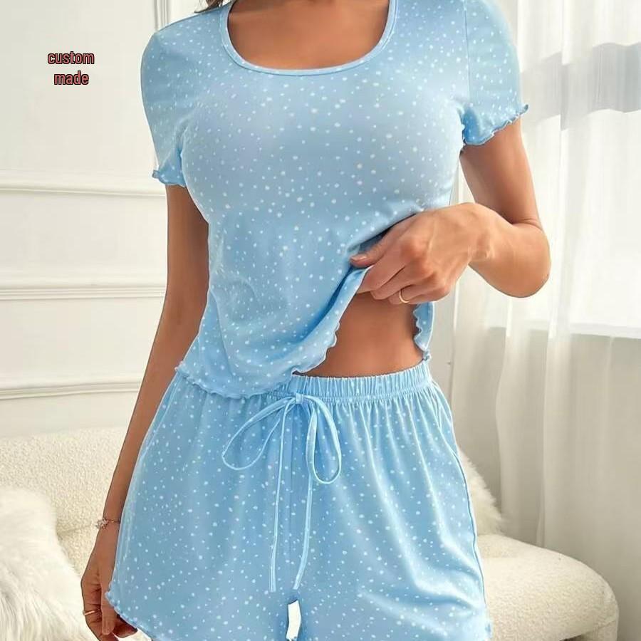 Sommerpyjama-Set im europäischen und amerikanischen Stil: Lässiges Kurzarm-T-Shirt mit Print & Damen-Shorts