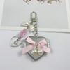 Perlen Schleife Metall Schlüsselanhänger mit herzförmigem Spiegel Y2K Stil Taschen Schlüsselanhänger Süß Cool Trendig Kopfhörer Kamera Anhänger