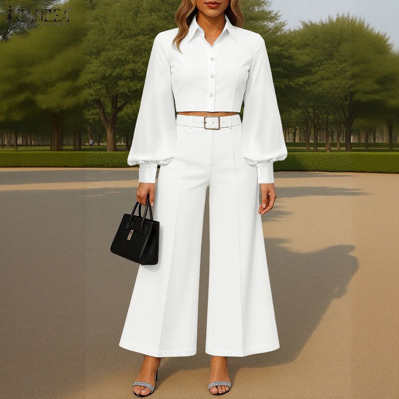 ZANZEA Lässiges zweiteiliges Anzug-Set für Damen mit langärmeliger Bluse und Hose