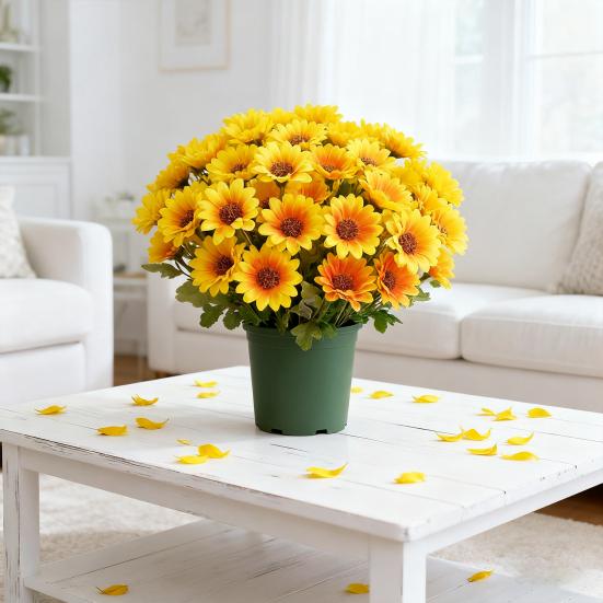 Künstliche Chrysanthemen Realistische Unechte Herbstblumen UV-Beständige Falsche Chrysanthemen für Innen-Blumenarrangement Balkon Außen Veranda Dekoration