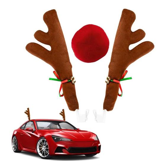Festliche Autodekoration: Verleihen Sie Ihrem Fahrzeug festliche Stimmung mit diesem weihnachtlichen Autozubehör, das zwei robuste Rentiergeweihe und eine leuchtend rote Nase umfasst.. Verwandeln Sie Ihr Auto in einen festlichen Schlitten für Weihnachtsstimmung unterwegs.