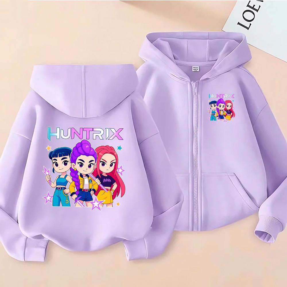 2025 Neuer Huntrix Mädchen Cartoon-Druck Reißverschluss-Hoodie Lässig Langärmlig Kindermode Sportbekleidung