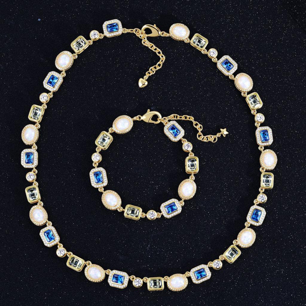Hip Hop Farbiger Edelstein Halskette Zirkon Schmuck Accessoires Damen High Sense Leichter Luxus Schlüsselbeinkette