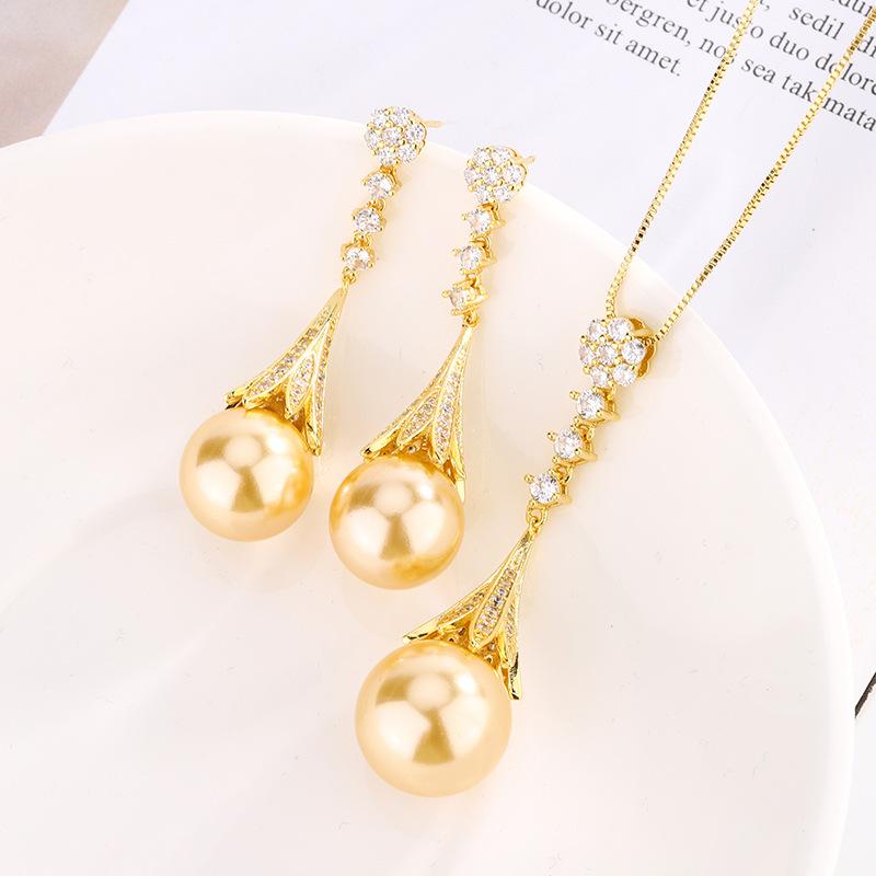 Schmuck Kupferboden Vergoldet Perle Temperament Quaste Gold Set Damen 16-14Mm