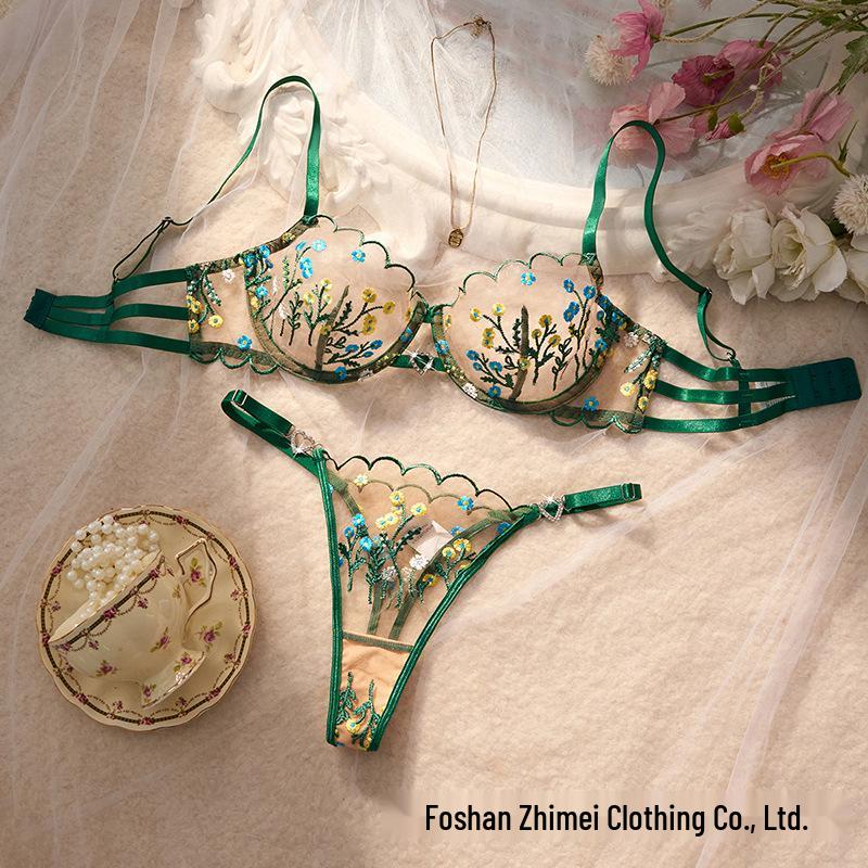 Gönnen Sie sich den luxuriösen Komfort und das exquisite Design dieses bezaubernden BH-Sets, gefertigt aus zarter Spitze. Die aufwendige französische Stickerei unterstreicht seinen süßen Stil und bietet eine Mischung aus Eleganz und Verführung.. Perfekt gestaltet für diejenigen, die sowohl Komfort als auch Raffinesse schätzen, verspricht dieses Set eine fesselnde Passform und ist damit eine unverzichtbare Ergänzung für jede Dessous-Kollektion.