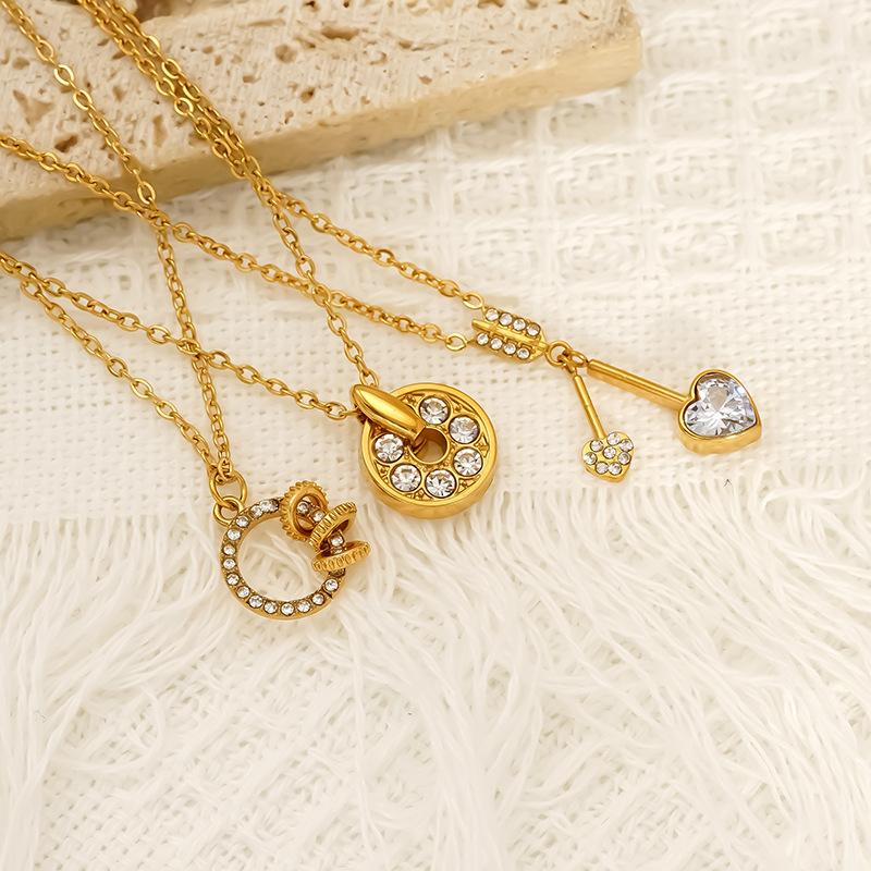 Edelstahl Licht Luxus Zirkon Halskette Weiblich Liebesanhänger Premium Gefühl Schlüsselbeinkette
