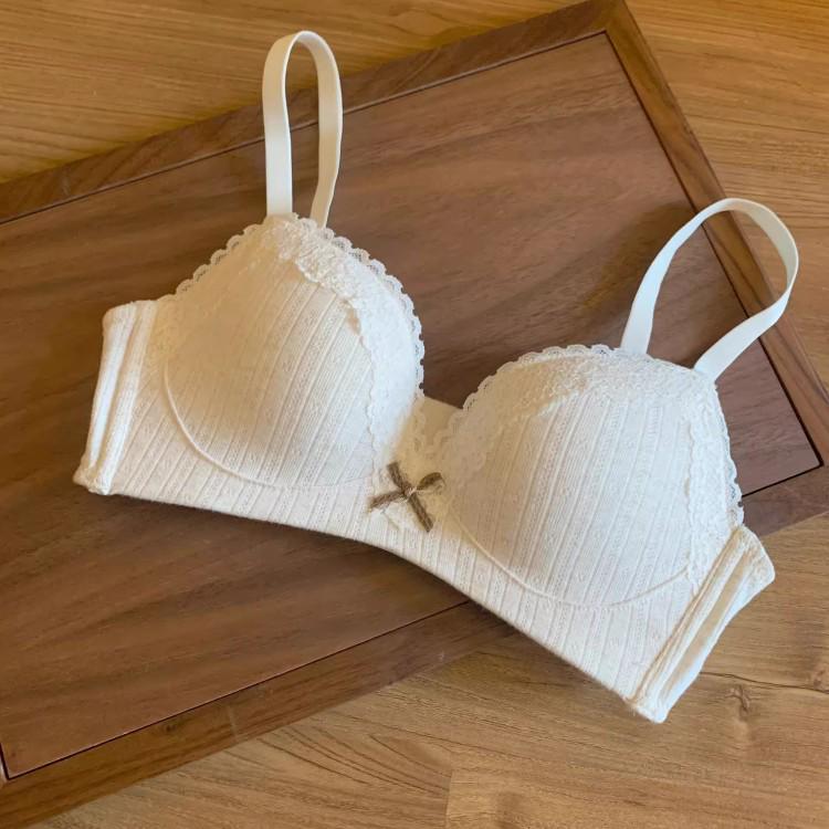 Strawberry Mochi Lace Trim Floral Underwear Set with Wireless Bra for Women