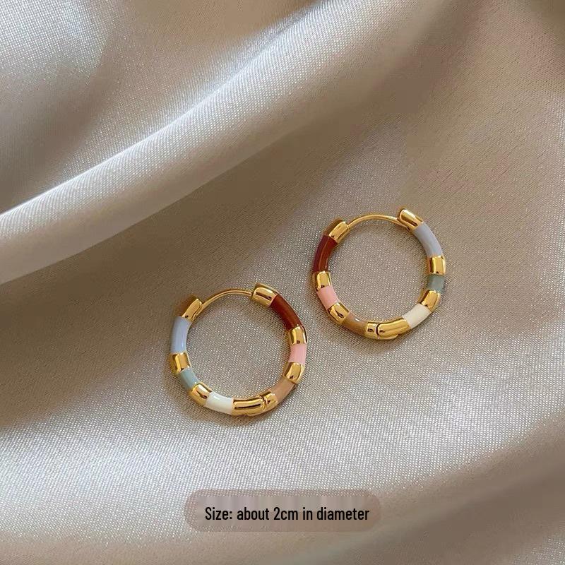 Französische Retro-Luxus-Farbblock-Ohrringe: Damen Ohr-Manschetten im chinesischen Stil