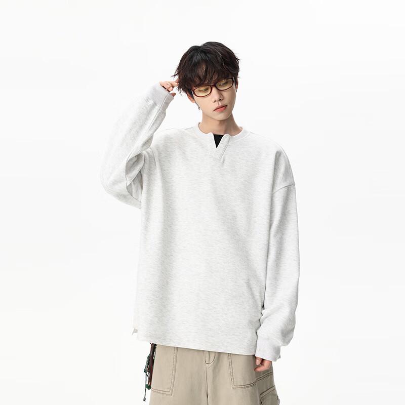 TOM ADAM Faux-Layered V-Ausschnitt Gestreiftes Pullover-Sweatshirt