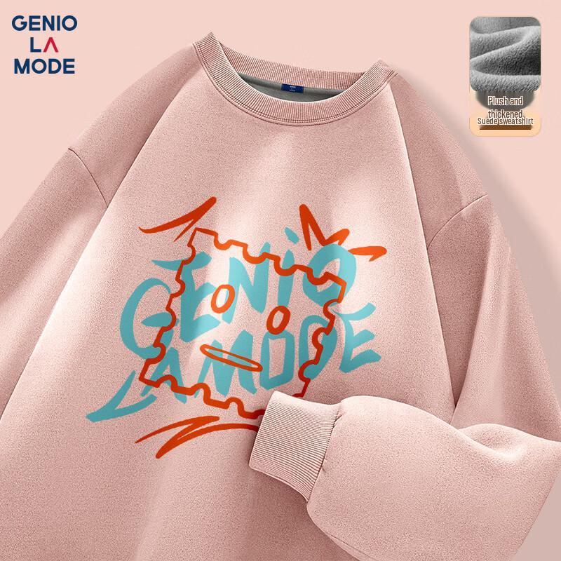 GENIOLAMODE Herren Wildleder Fleece gefüttertes bedrucktes Sweatshirt