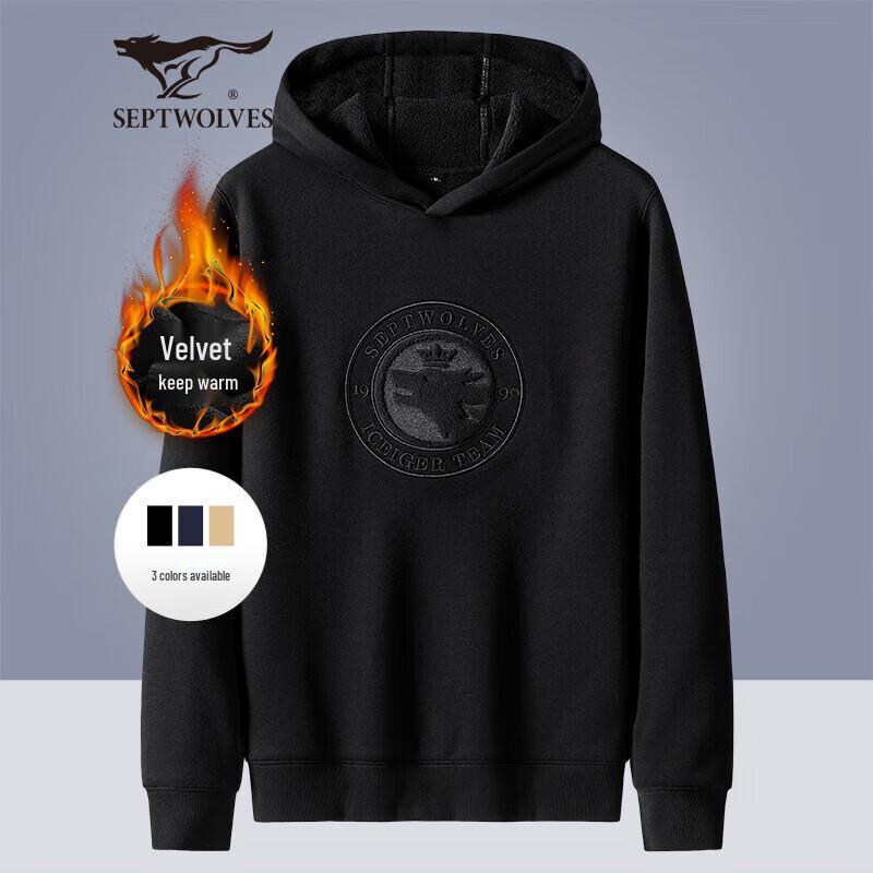 SEPTWOLVES Herren Fleecegefüttertes Kapuzensweatshirt
