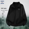 GENIOLAMODE Herren Schwergewicht Sweatshirt mit halbem Reißverschluss und Stehkragen