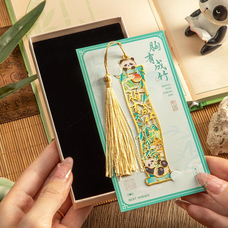 Leeres geschnitztes Panda-Lesezeichen Elegantes Metall-Lesezeichen Klassischer chinesischer Stil Kulturelle Kreativität Erinnerungsgeschenk für Grundschüler