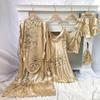 Damen-Pyjama-Set mit Kirschmuster: 5-teiliges dünnes Set mit Bademantel, Camisole, Shorts und Kleid