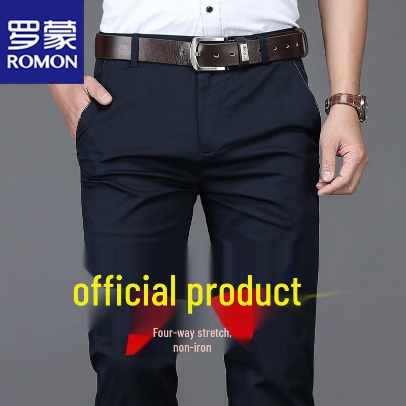 ROMON Men's Spring Autumn Loose Straight Casual Business Pants