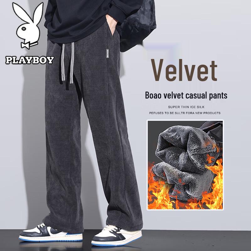 PLAYBOY Men's Autumn/Winter Warm Loose Straight-Leg Casual Pants