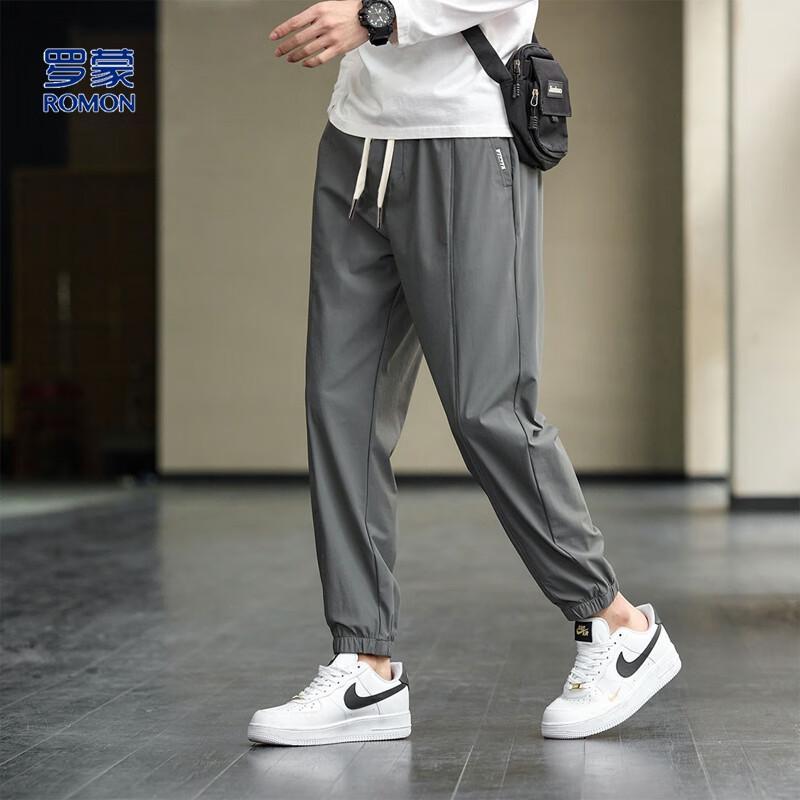 Romon Men's Ice Silk Drawstring Cuffed Casual Pants