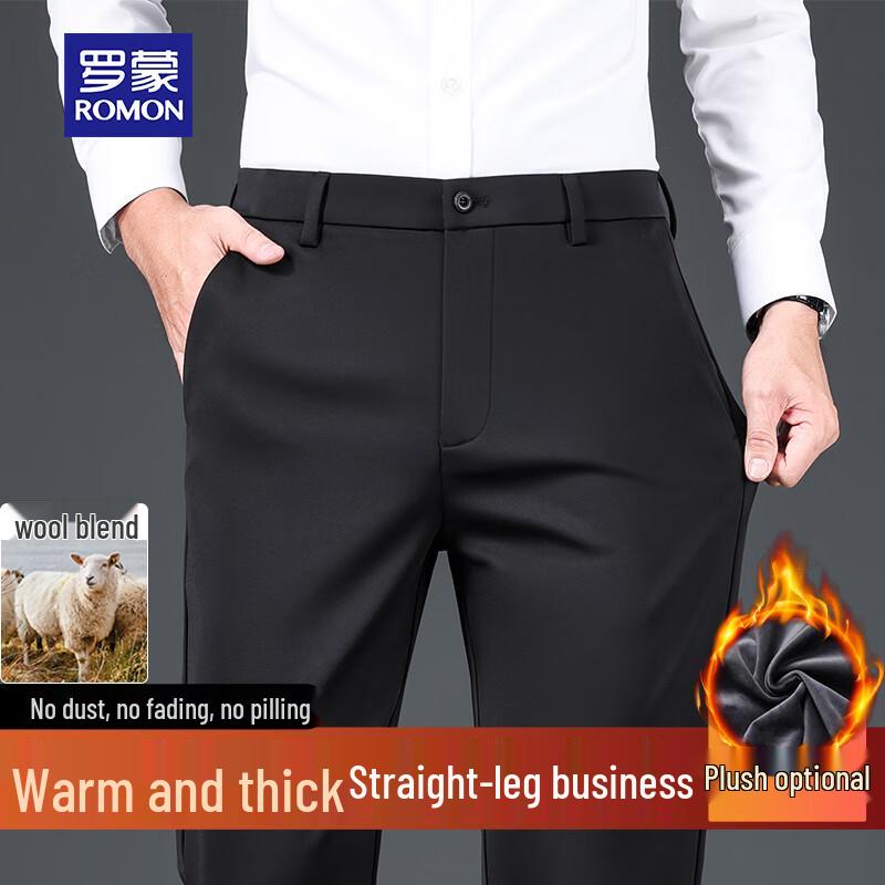 ROMON Men's Premium Wool Blend Business Casual Trousers