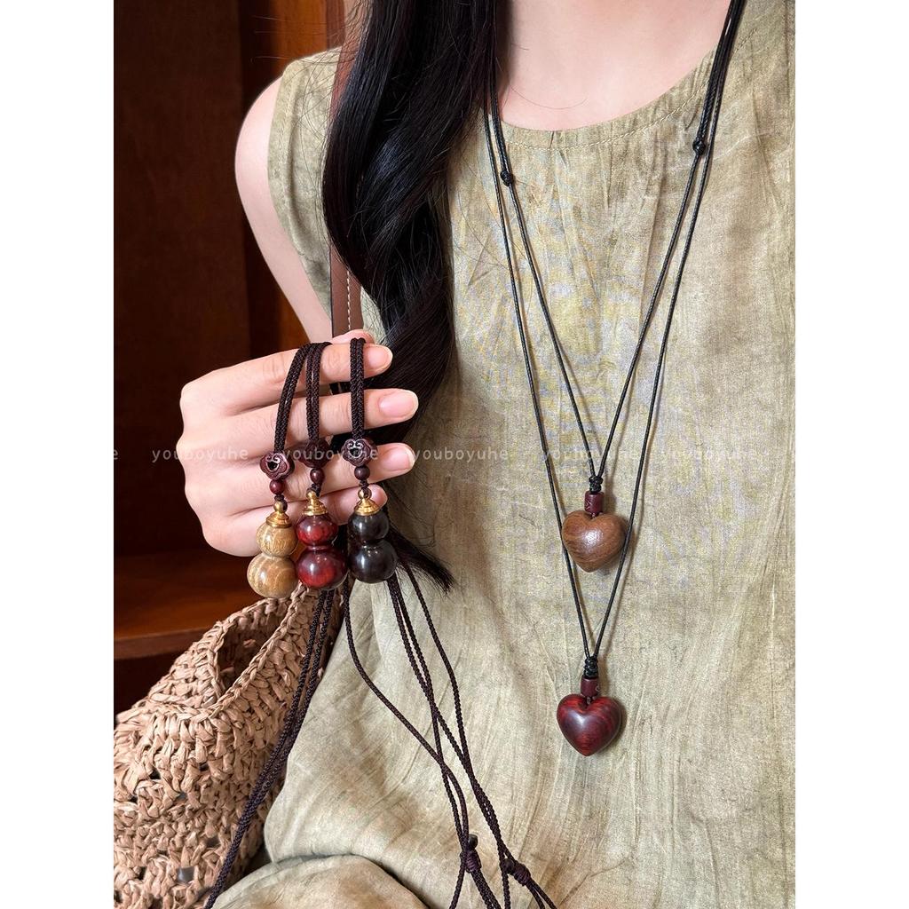 Sandelholz Kürbis Herz Lange Halskette - Retro Ethnischer Stil Damen Anhänger und Pulloverkette