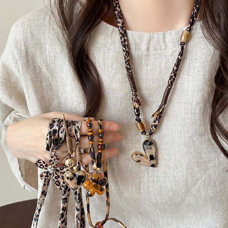 Elegant Leather Cord Heart Necklace with Wood Beads – Luxurious and Versatile for Autumn and Winter