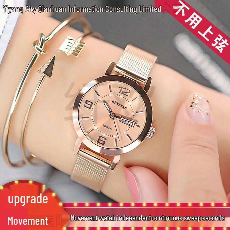 Schweizer Automatik Damen Wasserdichte Uhr mit Leuchtendem Doppeltem Kalender - Koreanisches Design für Studenten.