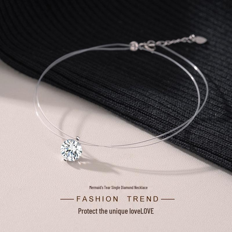 Elegante Meerjungfrauen-Träne Zirkon Diamant Halskette - Unsichtbare Angelschnur & Schlüsselbeinkette mit Acht Hearts & Arrows