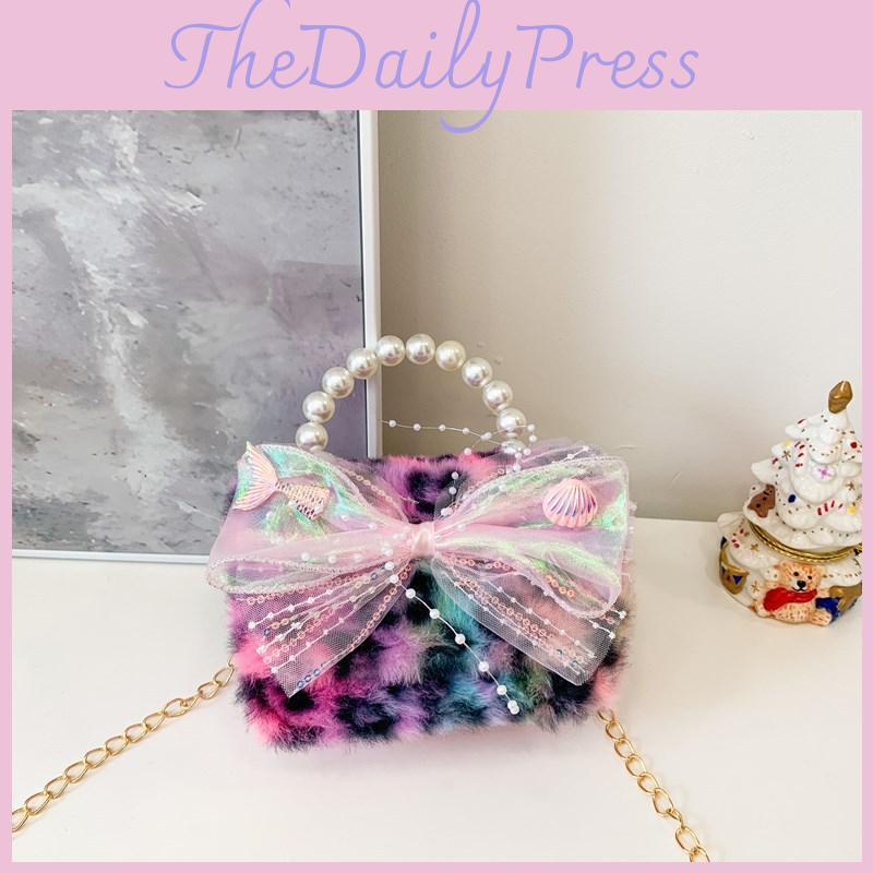 And Trendy Stylish Pink And Purple Bowknot Plush Childrens Handbag Kids For
