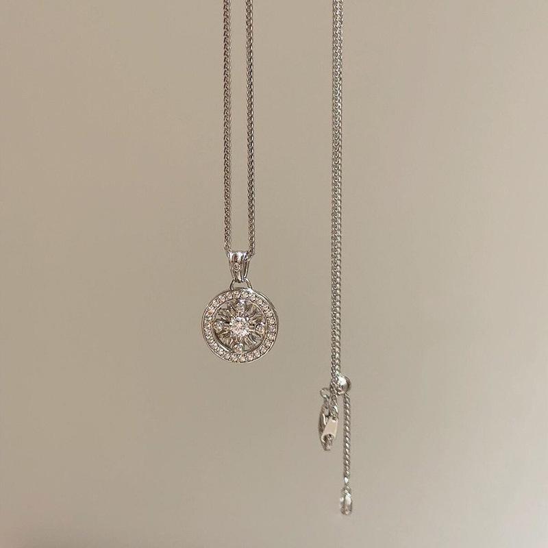 Elegante Diamantblumen-Kompass-Halskette: Damen Luxus Schlüsselbein Kette mit Ausziehbarem Design