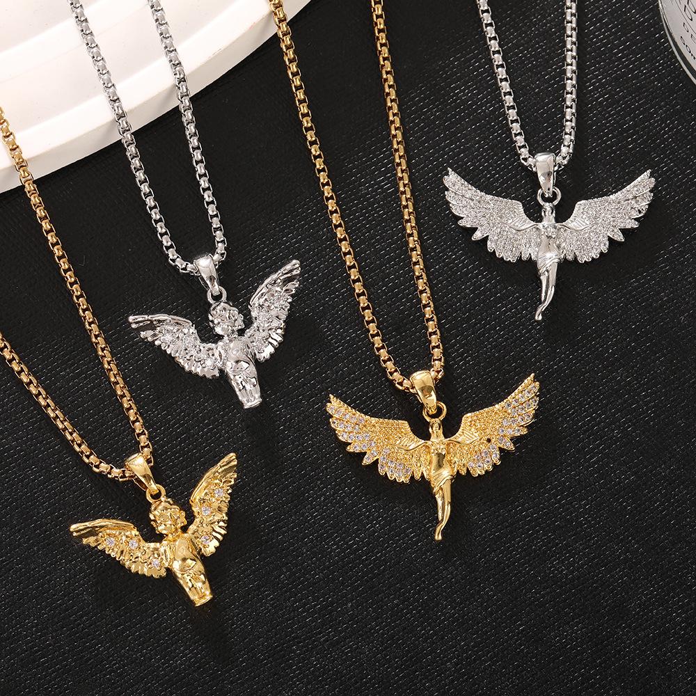 Kupfer Eingelegter Zirkon Amor Engel Anhänger Halskette - Nische Französische Mode Schlüsselbeinkette