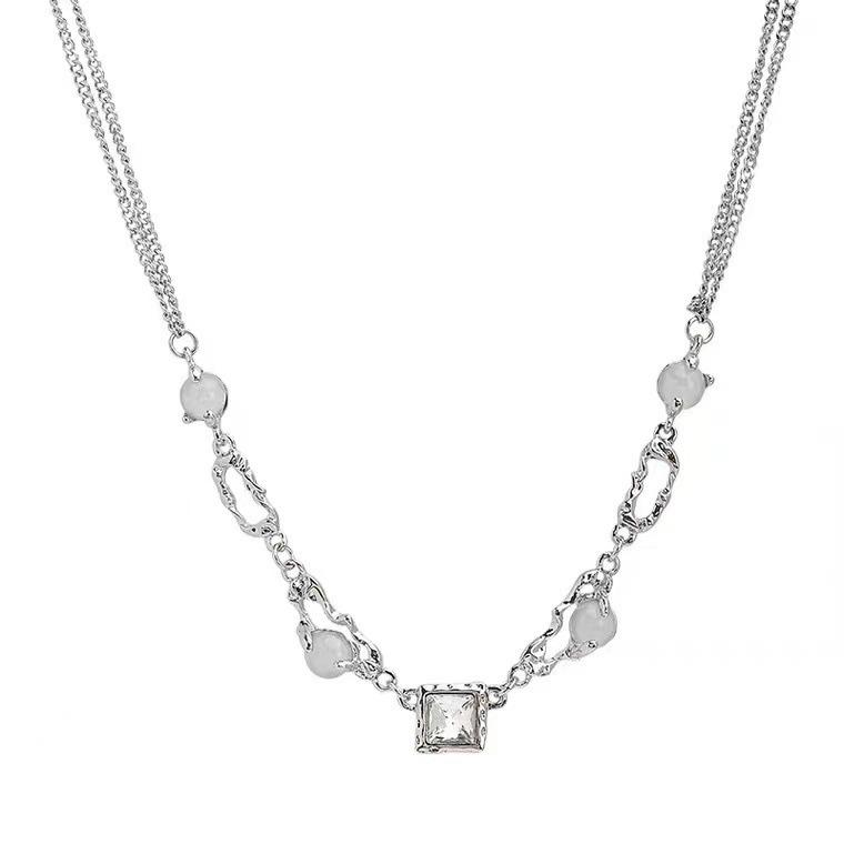 Elegante weiße Zirkon-Halskette für Damen - Leichter Luxus Sommer Schlüsselbein-Ketten-Accessoires