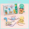 Wooden Dinosaur Animal Rope Threading Board Children Early Education Puzzle Toys
