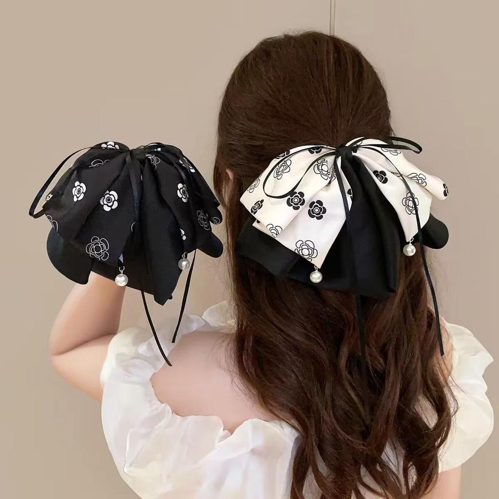 Koreanische florale Schleifen-Klauen-Haarspange für Frauen - Süßer Stil, Halboffene Hochsteckfrisur, Ponytail-Accessoire